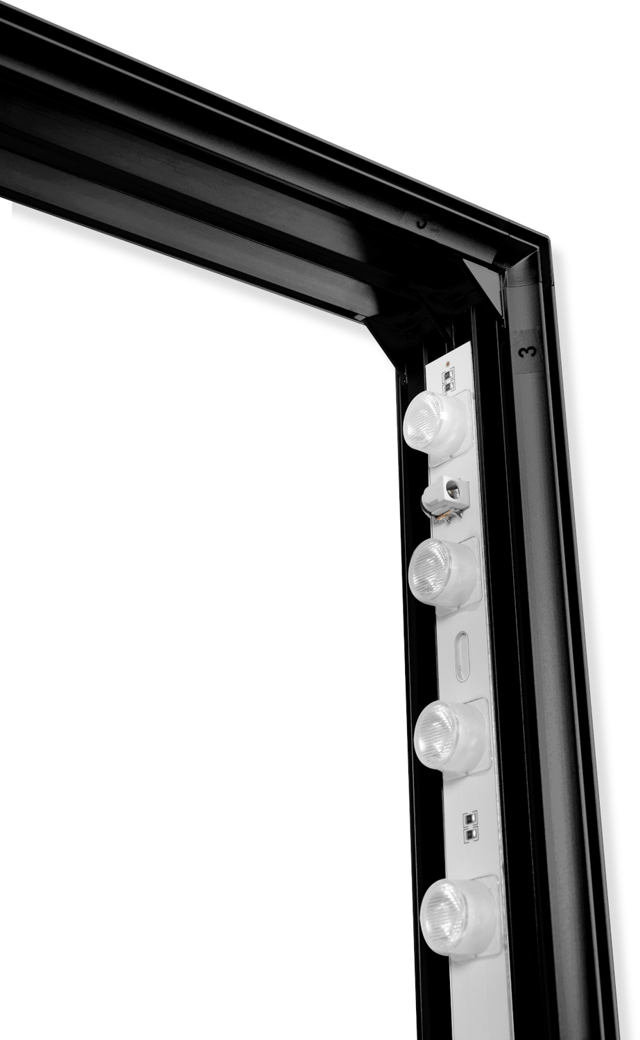 - Schnellanschlüssen für die Stromversorgung der integrierten LED-Beleuchtung